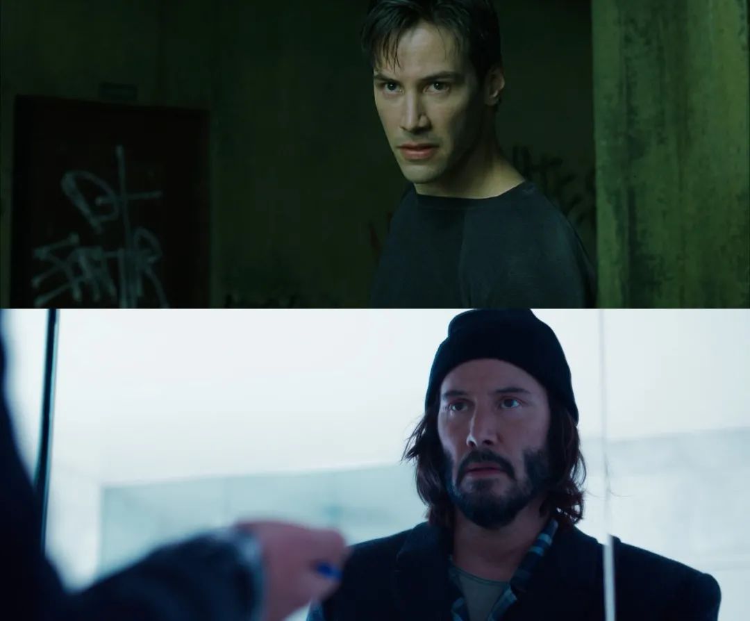 上:《黑客帝國》;下:《黑客帝國4:矩陣重生》