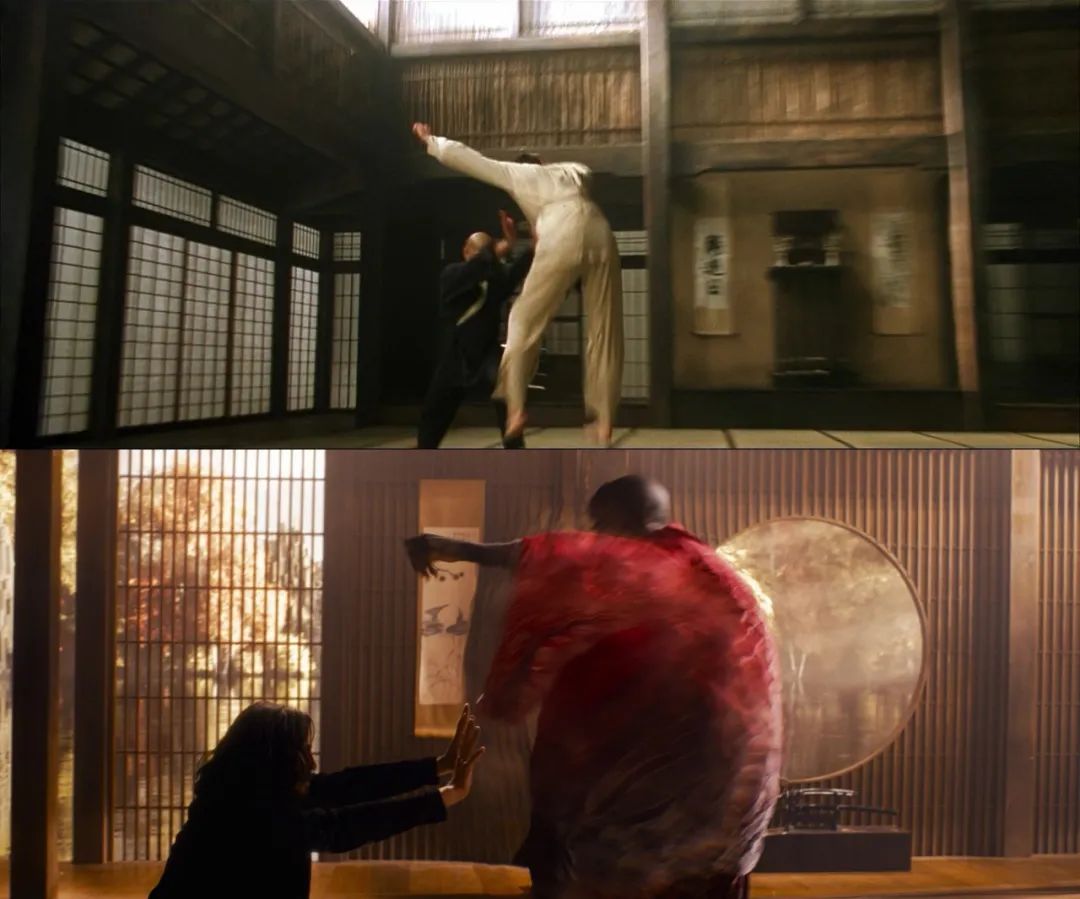 就連尼奧和墨菲斯的對打都如出一轍,只不過是調換位置。
