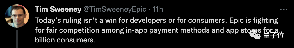 而Epic首席執行官CEO Tim Sweeney也公開表達了他的不滿,認為“這一裁決對開發商和消費者而言都算不上勝利”。
