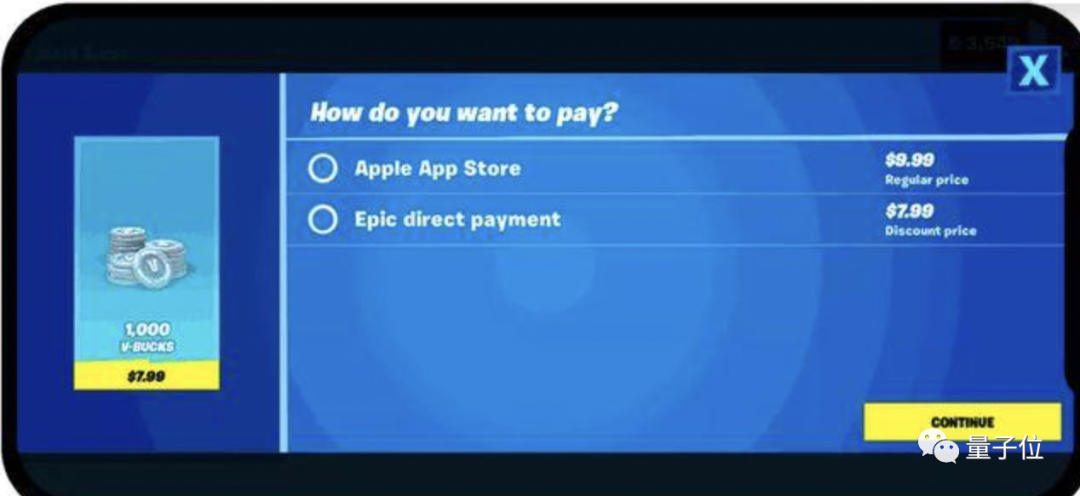 2020年8月份,遊戲公司Epic Games旗下游戲應用《堡壘之夜》,為了規避“蘋果税”30%的抽成,繞開蘋果應用內購支付系統,為用户提供了更便宜的直接付款渠道來購買遊戲內的物品。