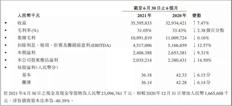 但龍頭地位之下,淨利潤下滑得慘烈。數據顯示,上半年淨利潤僅為20.35億元,同比下滑14.5%,毛利率下滑2.38%至31.05%,基本每股收益下降至0.36元。