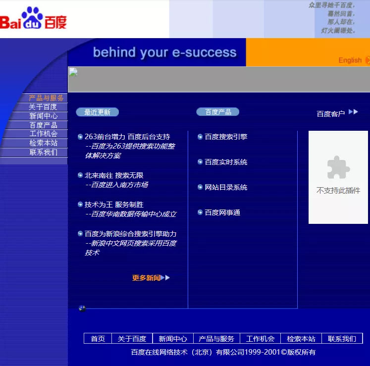 2001年的百度產品還沒有出來,打開百度的網頁是這樣的
