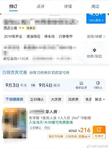 隨後,南都記者也通過智行平台預訂了9月3日該酒店的同一房型。酒店工作人員在得知南都記者是一人入住時同樣表示不接待單身女性,顧客需要在朋友的陪同下才能辦理入住。酒店方還表示,單身男性可以正常辦理入住。而據記者瞭解,公安機關相關工作人員表示9月2日、3日並沒有掃黃行動。
