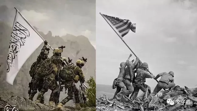 塔利班士兵模仿美軍插國旗