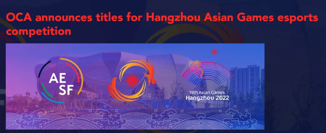 9月8日,亞洲奧林匹克理事會公佈了第19屆亞運會電子競技的8個正式項目,分別是王者榮耀亞運版、DOTA2、夢三國2、FIFA、爐石傳説、英雄聯盟、和平精英亞運版和街頭霸王5。這是電子競技首次作為正式項目亮相亞運會,無數中國玩家紛紛奔走相告。