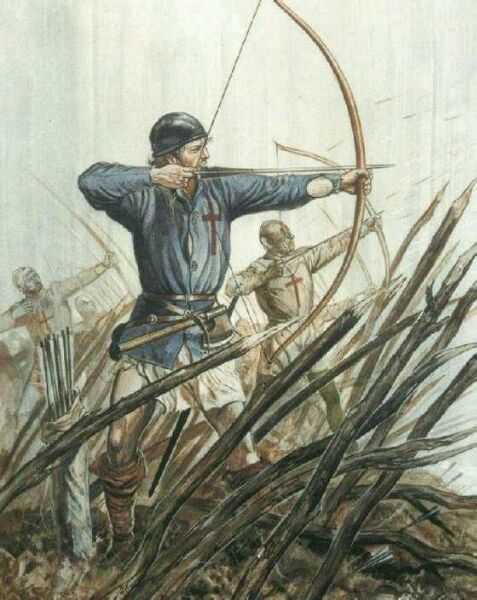 英王愛德華三世跨海入法國,九千英軍對三萬法軍。英國平民長弓手擊退法國貴族重騎兵15次衝鋒。以己方傷亡200餘人的代價,斃傷萬餘法軍。