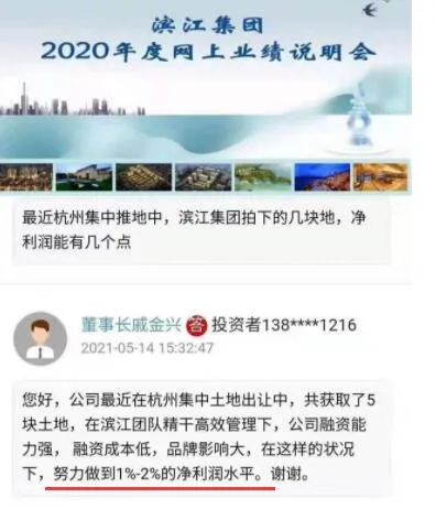 而中國的地產商們從1998年打到今天,行業的淨利潤多少呢?濱江地產的董事長戚金興説,