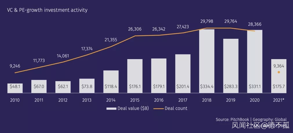 全球私募和風投交易活動圖,數據截至2021年4月27日