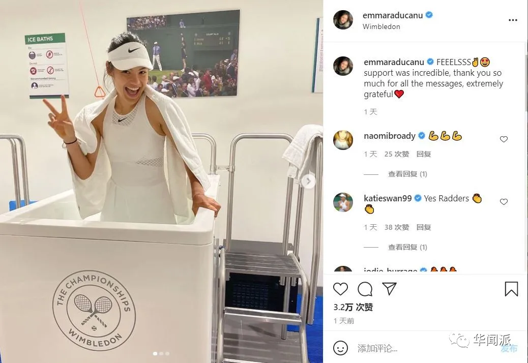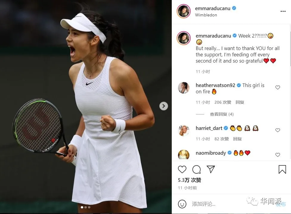 ▲進入温網16強後,拉杜卡努發Ins感謝粉絲支持**(圖片來自拉杜卡努的Ins)******