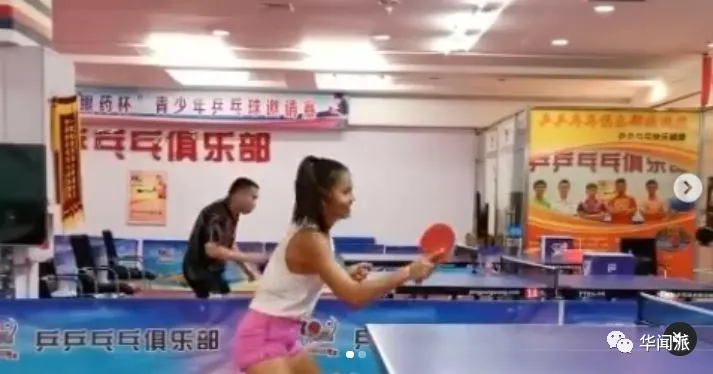 ▲2019年8月,拉杜卡努曾在中國的一家兵乓球俱樂部打乒乓球(視頻截圖來自拉杜卡努的Ins)****