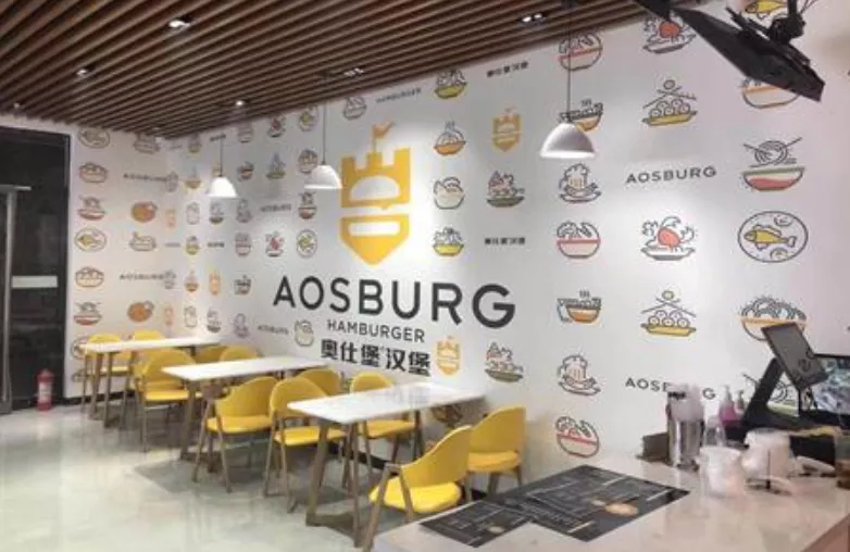 之前他還代言過一個奶茶漢堡品牌,名叫“奧仕堡”。