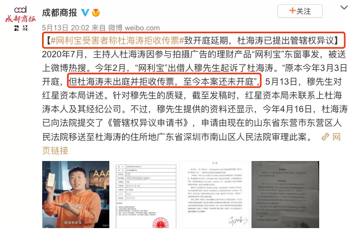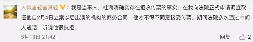 當事人爆料,他向法院申請調查杜海濤的商務合同,對方才不得不同意接受法院傳票。