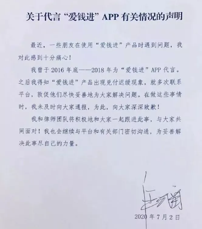 比如之前汪涵代言的理財app,廣告打的天花亂墜,結果消費者的錢被坑了。