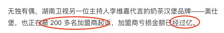 那次的事件造成了200多名加盟商利益受損,正在起訴,虧損金額過億。