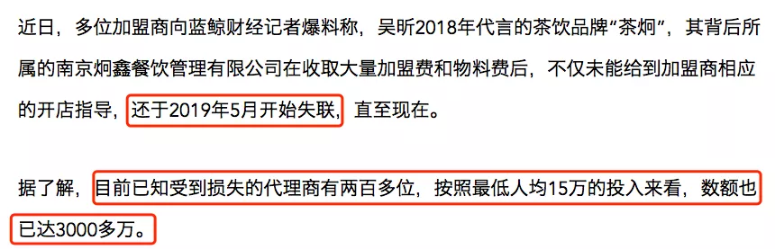 這些錢對於明星的總身家來説只是九牛一毛,可對於那些加盟商來説,這是他們大半輩子的血汗錢,家庭開支,孩子上學,贍養父母全指着這些掙錢了。