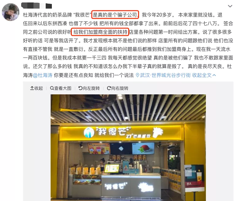 但加盟商們怨聲載道,控訴品牌騙錢不負責任,沒有按照約定的內容進行扶持。
