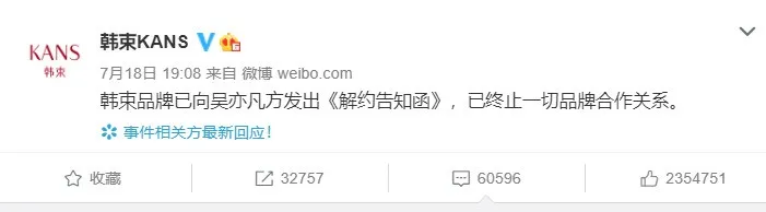 今年吳亦凡事件發生時,因為韓束反應迅速第一個與吳亦凡解約,因此“吃到了一波女性紅利”,品牌直播間一度被擠爆。