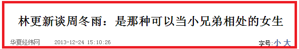 緋聞一出,兩人矢口否認,周冬雨説“與林更新不來電,也沒有把他當閨蜜”,而林更新則説“周冬雨不是我的菜,她很豪放”。