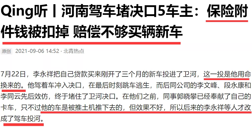 再者,文章前面也説了,五壯士不是僅僅把車奉獻出去這麼簡單,他們還冒着生命危險,把車開進了決口處。