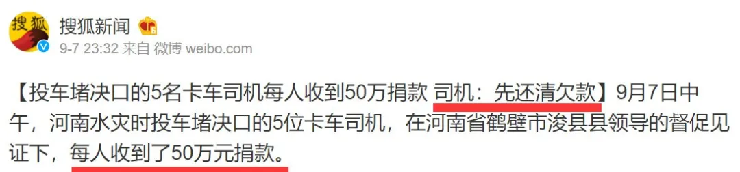 捐款要落到實處,我相信,把人民羣眾馳援河南的愛心捐款金,拿出來一點給每個司機發個10萬塊作為獎勵,河南人民不會拒絕,全國人民也會大力支持。