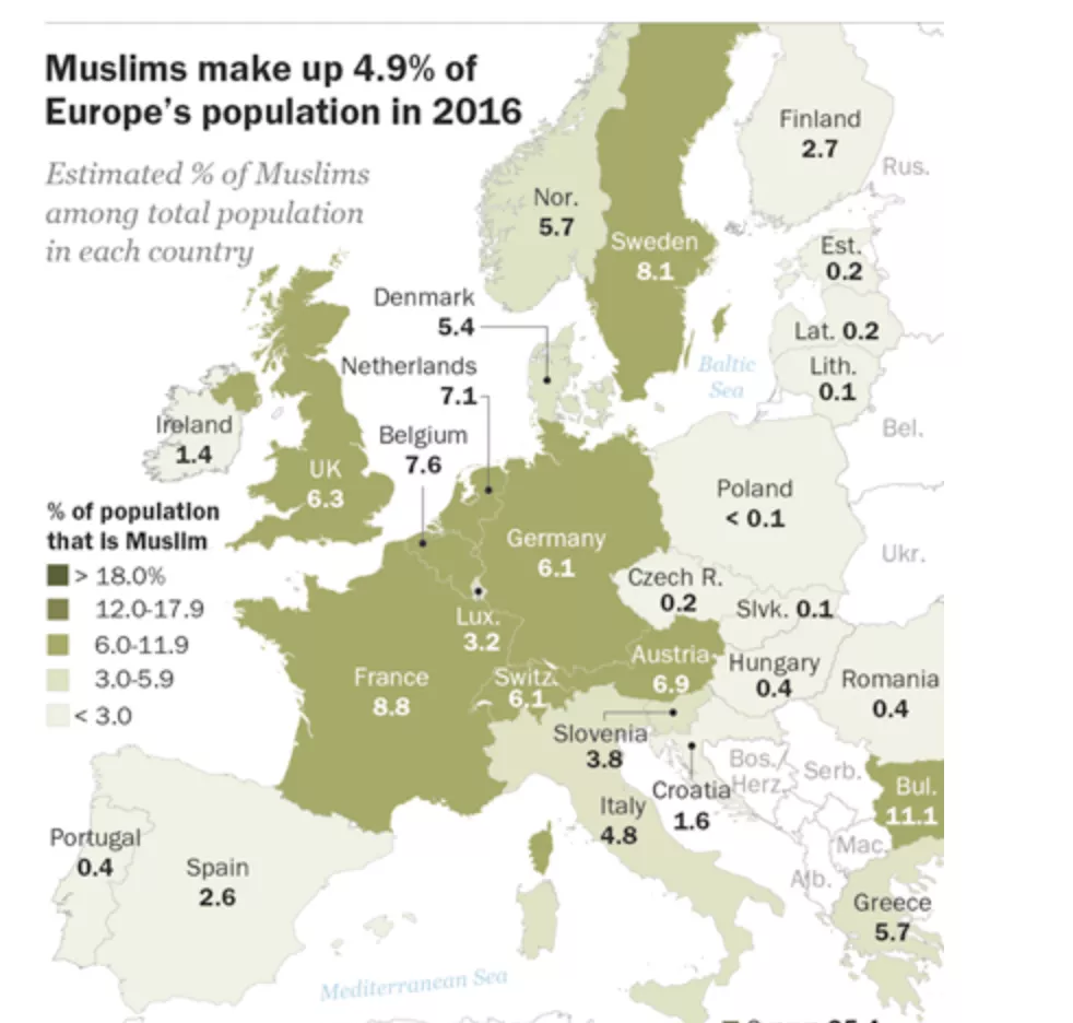 這個數據和大家心理的印象估計差別非常大。其實,歐洲人對到底自己國家有多少穆斯林,也完全沒有正常的概念。