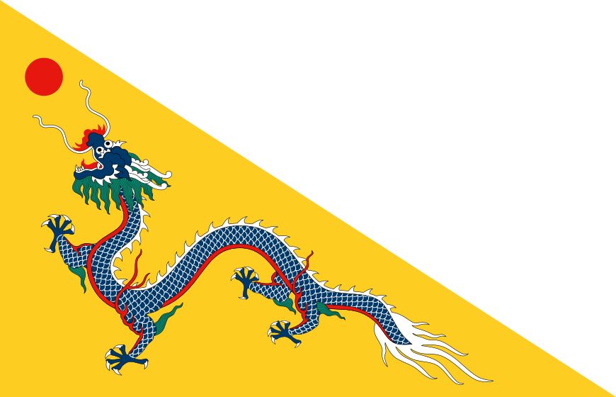 ▲清朝的黃龍旗,早期做成三角形是為了避免僭越八旗中的正黃旗