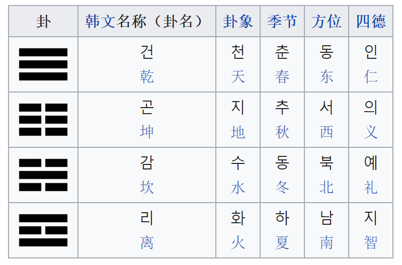 四卦也有寓意,分別代表四季四方、四象、四德。這些看上去很美好的解釋,仔細一想,卻不免讓人喟嘆——太極旗真是一旗成讖,完美地預言和顯示了朝鮮半島的現狀!