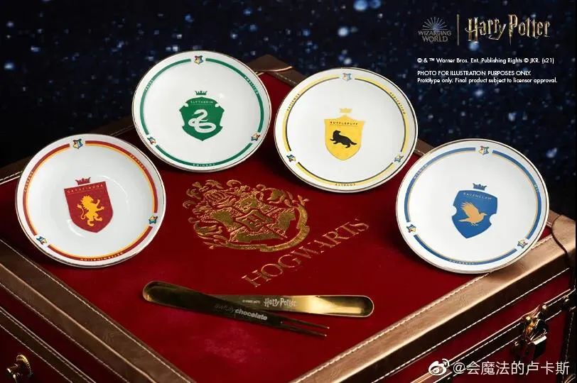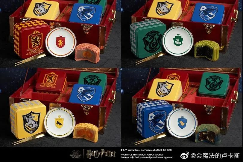 **在食品領域,**除了大家早就熟悉的哈利·波特周邊巧克力蛙等零食以外,對於即將到來的中秋,**今年還有哈利·波特和awfully chocolate的全球首款官方聯名月餅。**禮盒以霍格沃茲四學院為主題,並配有相應餐具。