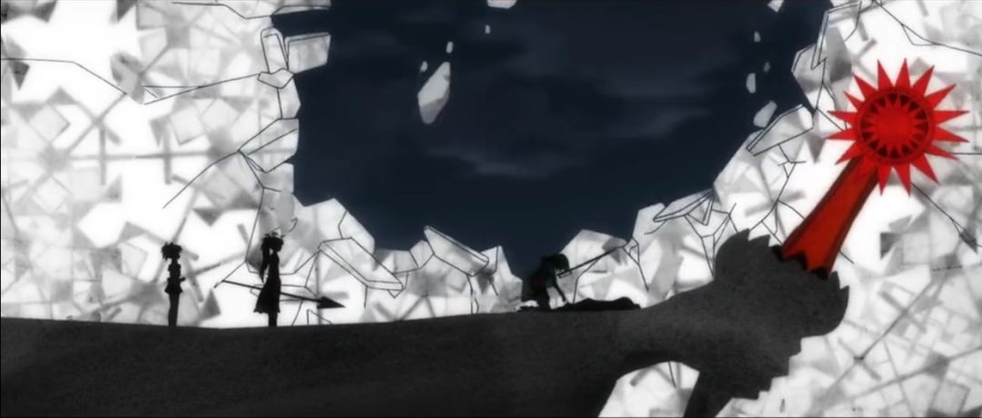 將這種封閉與隔離,表現得最為突出的莫過於**《少女革命》**與《魔法少女小圓》。在《魔法少女小圓》中,魔女空間的設置則是通過劇團狗咖喱詭異的珂拉琪風格,將魔法少女的戰鬥侷限於(在設計風格上就很)詭異的魔女空間。並且多次以這種戰鬥與犧牲不為人知的秘密性,用來營造悲劇效果。