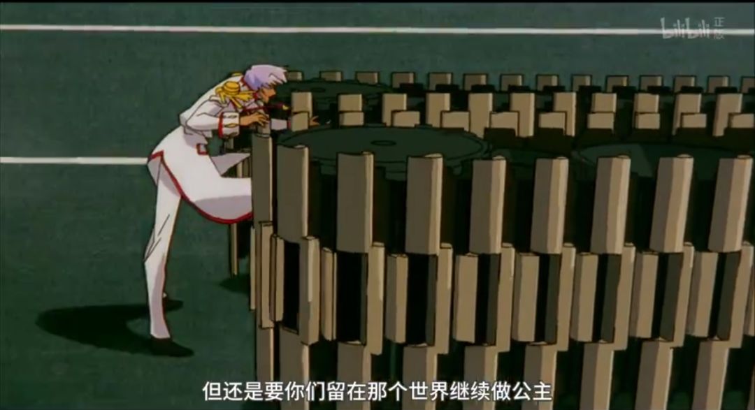 《少女革命》是一個典型的突破這一封閉 的案例,首先通過類似類似舞台劇的音樂與場景效果,突出故事的非日常與非現實。同時,僅限於學院的場景也顯示出這個世界的封閉性。而在劇場版的最後,兩位女主角——天上歐蒂娜最後與安茜突破重重阻礙,衝出了這個封閉的世界。通過女性對自我和社會規範的超越完成了“對世界進行革命”的主題的表達。
