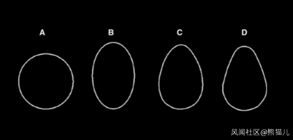 蛋的四種基本形狀:(A)球形,(B)橢球形,(C)卵球形,(D)梨狀。| 圖片來源:Narushin et. al. / Annals of the New York Academy of Sciences