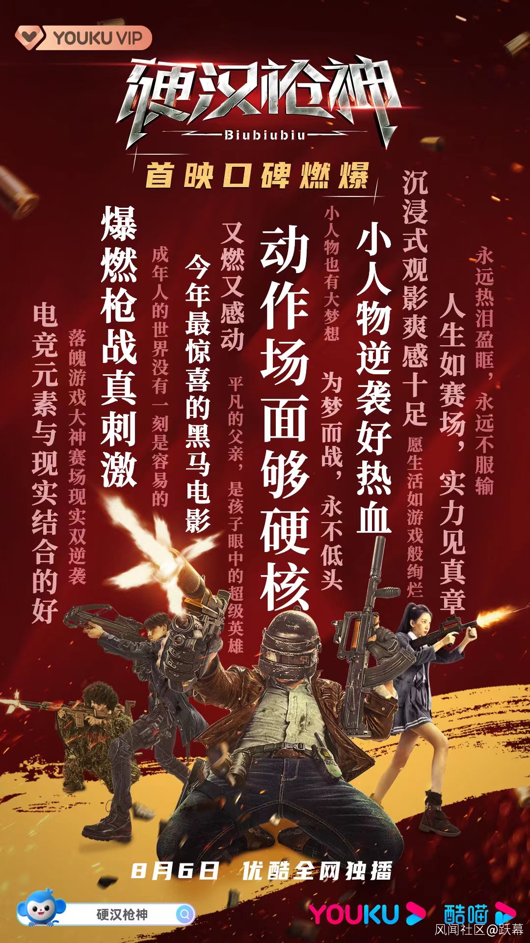 8月6日,《硬漢槍神》在優酷獨家上線,上線首日在豆瓣不僅開出了網絡電影的最高分,也是今年整個國產院線電影的最高分。除此之外,根據燈塔專業版數據顯示,《硬漢槍神》分賬票房超過了2700萬,累計觀影人次超過600萬,在今年網絡電影千萬票房榜中也暫列第七位。