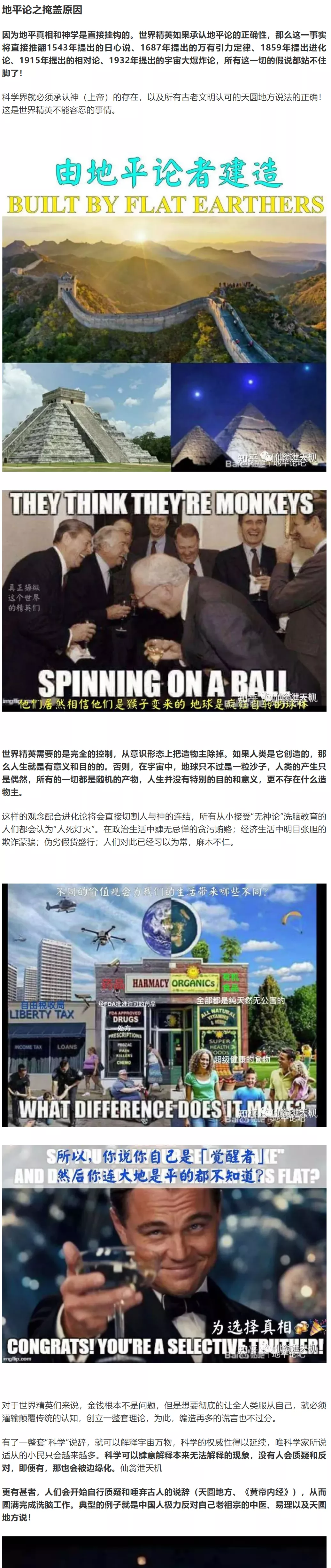 美國有很多人相信地平説。他們有各種似是而非的證據來證明“地球是平的”。而説地球是一個球體,則完全是政府的陰謀。