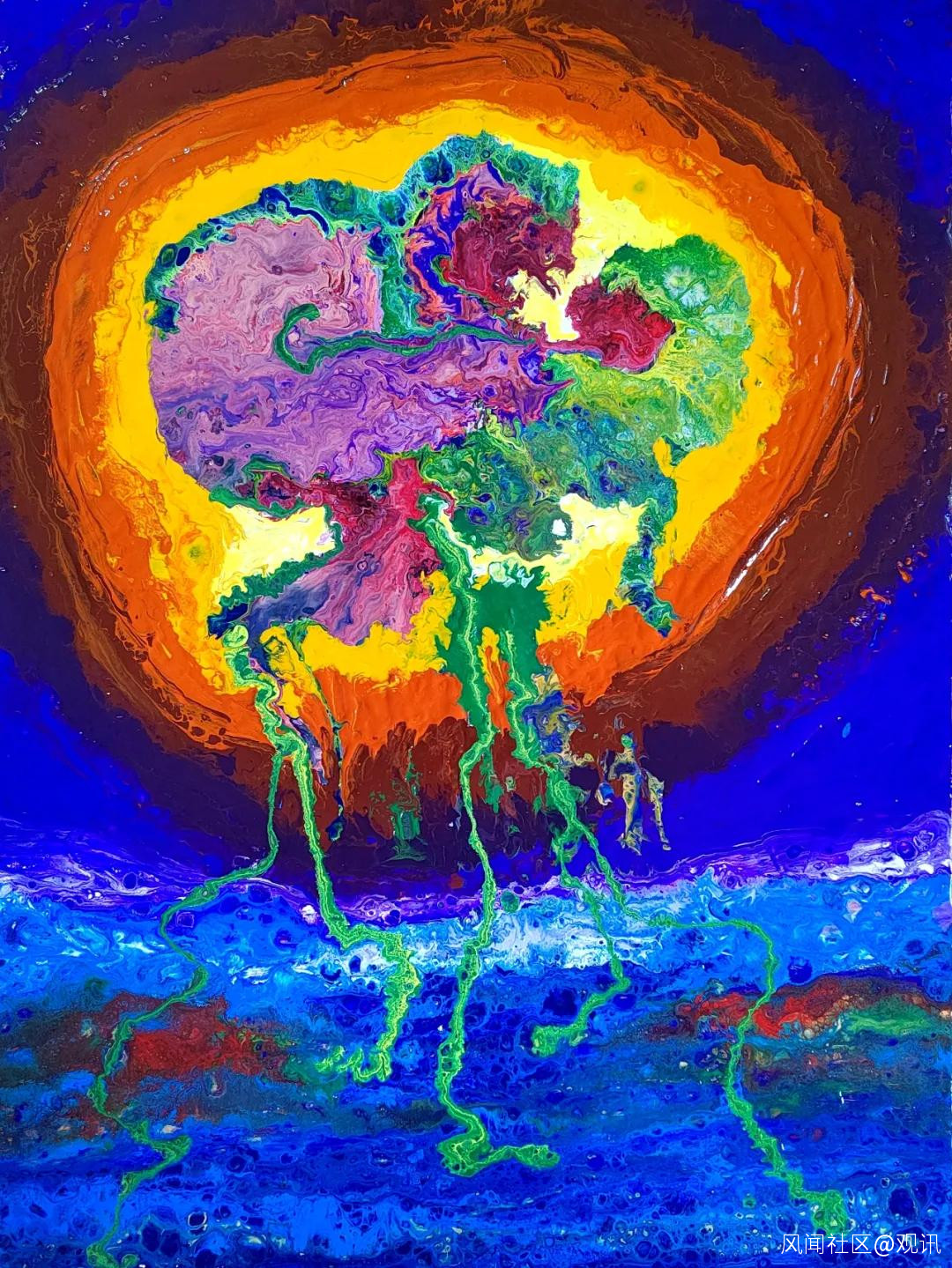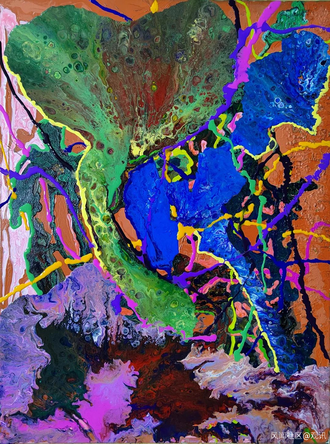 芳竹喜歡在音樂和情緒的引領下進入創作狀態,使她的作品充滿激情和旋律感,畫面呈現出當代藝術手法和東方詩意抒情相融的美好體驗。她的詩畫作品既是對深層事物的想象結果,又是對深層事物的表象化行為,時間、生命和情緒在自然的迴響都會在她的作品中呈現出來。芳竹的詩畫藝術傳遞出這樣一個理念:我們是通過創造來塑造自我和世界的,我們可以通過語言來推動自己和世界。