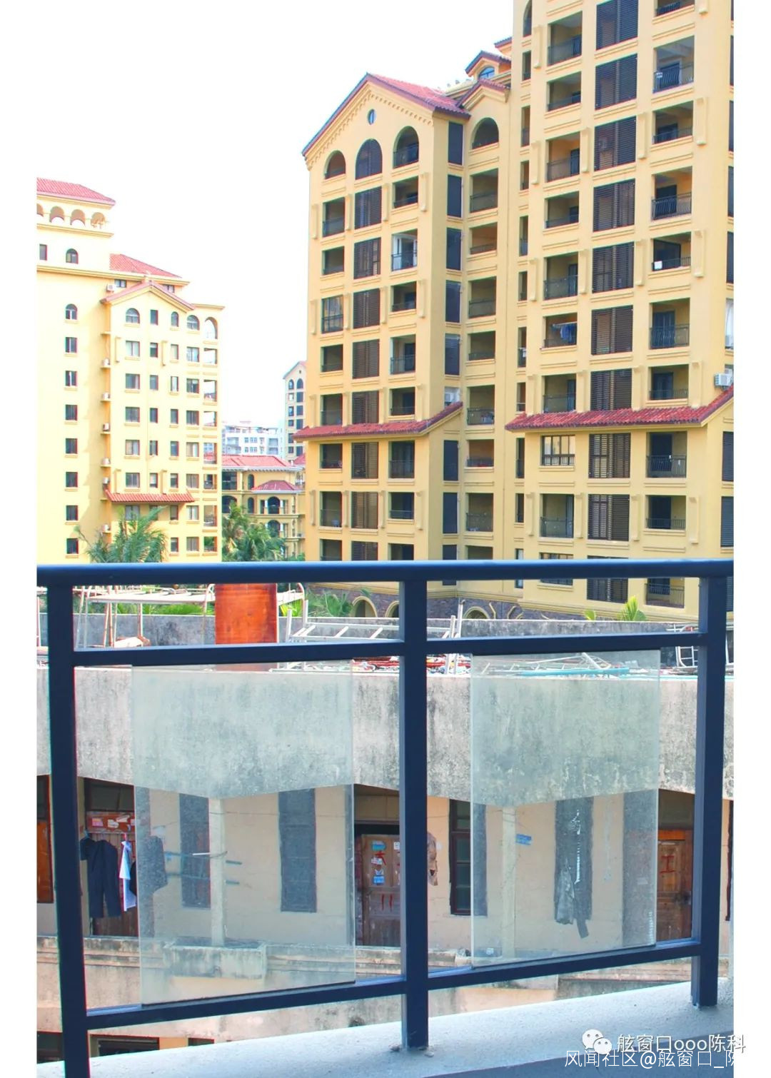 當時在5號樓陽台欄杆外可見建築工人的宿舍,後拆除 2015.4.17