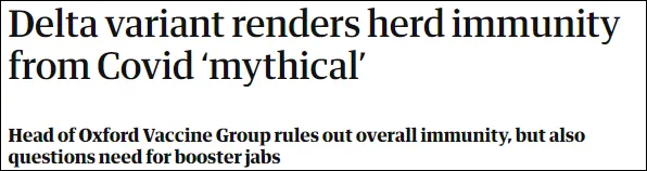 面對當前的新冠病毒Delta變異毒株,尋求實現羣體免疫已經是“不可能的”,理由是接種過疫苗的人羣還可能被Delta毒株繼續感染。