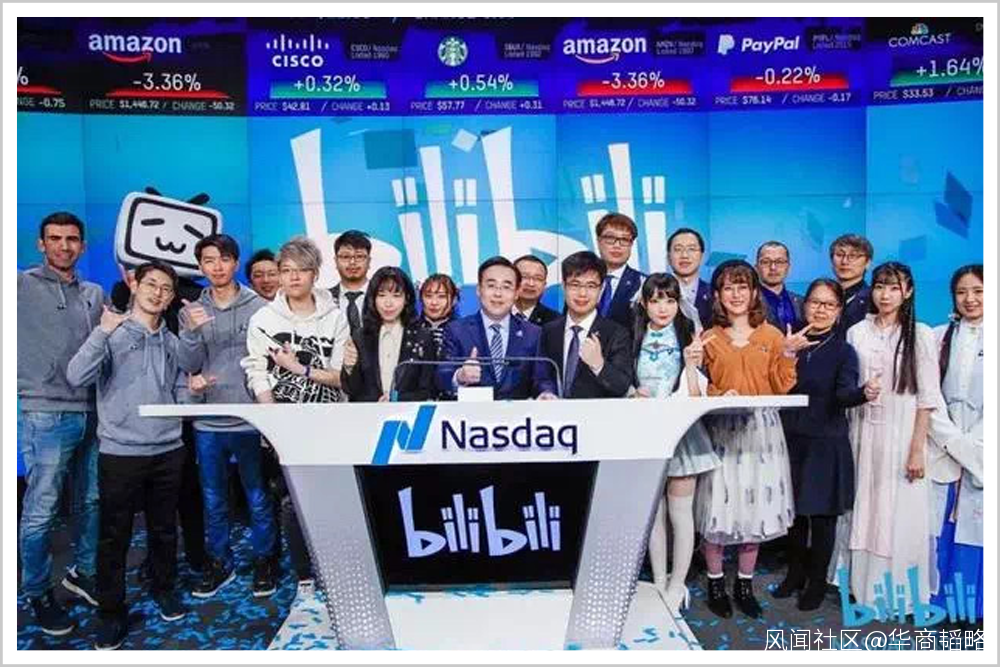 2018年3月28日,bilibili順利在美國納斯達克證券交易所掛牌上市。上市後,陳睿作為公司董事長及CEO,持股18.3%,徐逸作為創始人及總裁,持股11.1%。