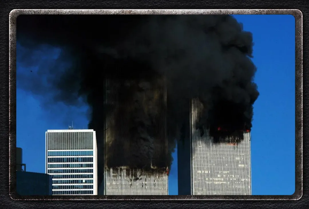 美國東部時間2001年9月11日早上8時46分,一架被劫持的飛機撞向位於紐約市中心的世貿中心北座大樓,大樓隨即起火,濃煙滾滾。