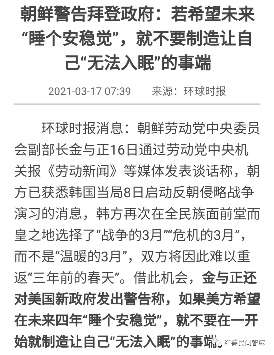 説到這裏,大家應該明白,今年3月,朝鮮勞動黨中央委員會副部長金與正警告美國,若希望未來睡個安穩覺,就不要製造讓自己無法入眠的事端,這句話的意思了吧。
