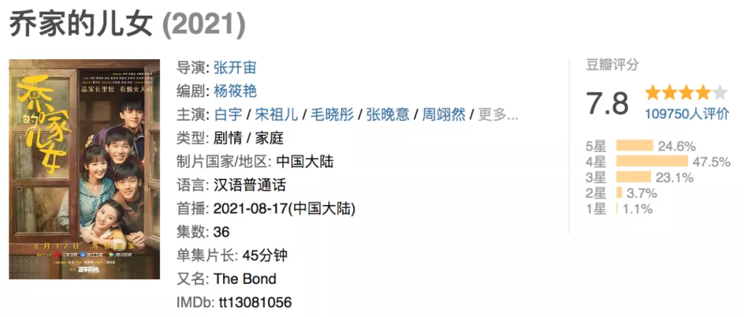 《喬家的兒女》從8.7分掉到了7.8分,有些觀眾覺得這部劇強行將家庭劇中的糟心事集中放在喬家的五個倒黴蛋身上,有點太戲****劇了。