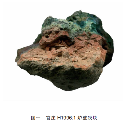 官莊遺址出土的鑄銅遺物中,有的由宏觀形貌即可確定功能,如陶範與制範及澆鑄工序有關,粘附銅渣的爐壁(坩堝壁)(圖一)當與精煉粗銅或熔鍊青銅的工序有關,而有的遺物則需要通過顯微形貌觀察及物相分析方可確認。銅渣、銅塊形貌多樣(圖二),僅肉眼觀察未必能夠將粘附熔鍊浮渣的銅塊與自然鏽蝕的金屬塊準確區分。若能在銅渣、銅塊表面找到高温過程產生的特定物相,則能較為準確地判定其為精煉或熔鍊產物。