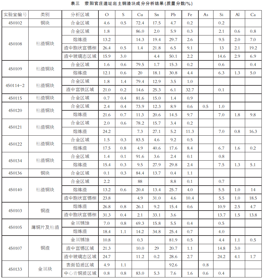 河南滎陽官莊遺址鑄銅技術與金屬資源變遷初步研究_風聞