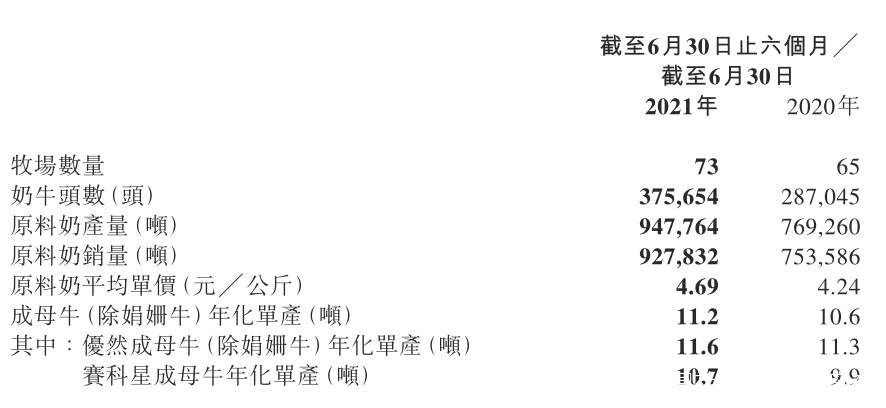 另一方面,新牧場不斷投產,增加產能,貢獻了較多的特色生鮮乳,原料奶產量有大幅度的提升,由2020年6月769260噸增長至報告期間的947764噸。