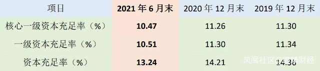 **《眼鏡財經》還注意到,近三年蘇州銀行的資本充足水平持續下降,核心資本輒待夯實補充。**2021年6月末,核心一級資本充足率為10.47%,一級資本充足率為10.51%,資本充足率為13.24%,均較上年末出現不同程度下滑。