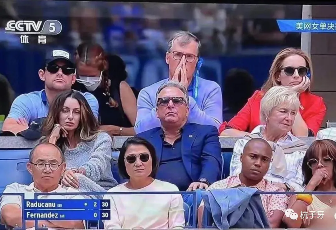 這一方式帶有“意外”色彩。鏡頭本意是抓拍美國網球名將安迪羅迪克(Andy Roddick)的特寫。當角度拉開後,坐在羅迪克下方的潘石屹和張欣出現在鏡頭中。潘石屹身着Polo衫,戴着他標誌性的圓框眼鏡;張欣戴着墨鏡,着白色長袖。