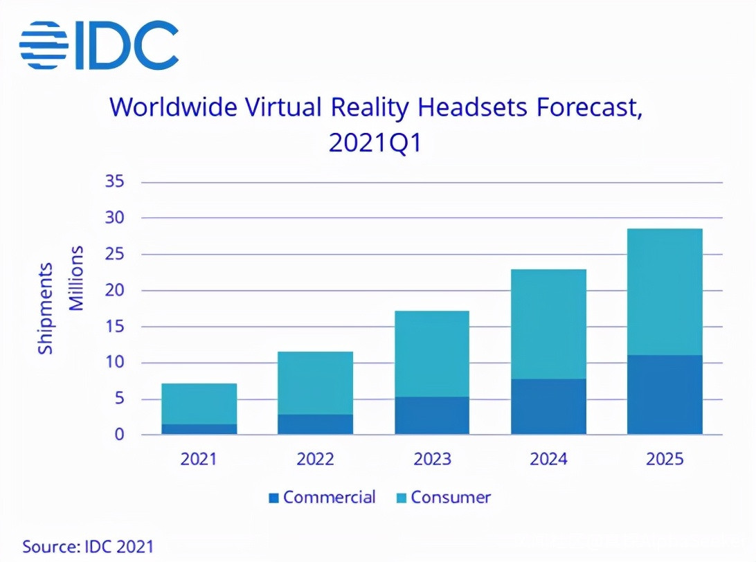 根據國際數據公司IDC的數據,今年第一季度全球VR頭顯設備出貨量和去年同期相比增長了52.4%,在2021-2025年間,全球VR頭顯設備出貨量有望達到約41.4%的年均增速。