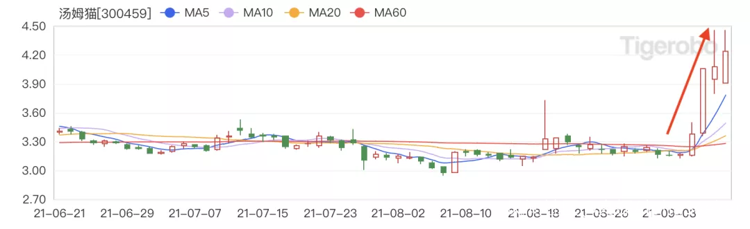 但這絲毫不影響市場的熱情,截至9月10日,湯姆貓的股價已經連續5個交易日收盤上漲,總市值從111.1億元增長至149.07億元,累計增長約37.97億元,累計漲幅約為34.18%。
