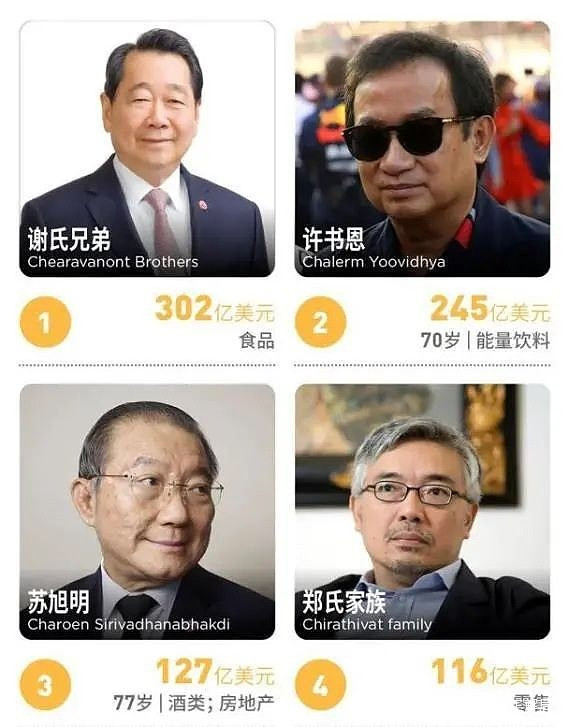 2020年福布斯泰國超級富豪榜中,前4名,都是華裔。