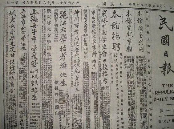 《民國日報》最早在1916年的上海租界發行,發行之初就是為了反袁護國,是革命黨宣傳革命思想、反帝反封的主要言論陣地。1924年國民黨一大召開後,將《民國日報》改組,升級為國民黨的機關報。1928年12月東北易幟後,該報流行全國,其地位類似於今天的《人民日報》,是當時中國最具影響力的報紙之一。