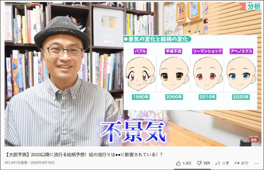 他經常會在頻道更新自己的繪畫教學,有次講到業界畫風流行趨勢預測,就説道**“不同年代萌系角色類型的流行趨勢,大體上和日本男性自尊心掛鈎”**。